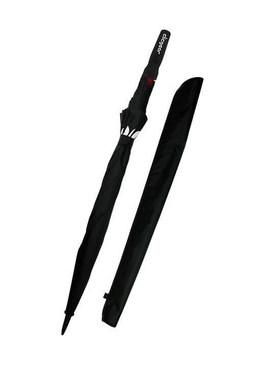 Clicgear heeft als topmerk in golftrolleys en golftassen ook prachtige, stevige golfparaplu’s. Mooi als aanvulling op uw Clicgear trolley maar ook zonder trolley fantastisch! Zwart van kleur, enorm in afmeting en Double Canopy dus 2-laags zodat de wind er geen vat op krijgt.