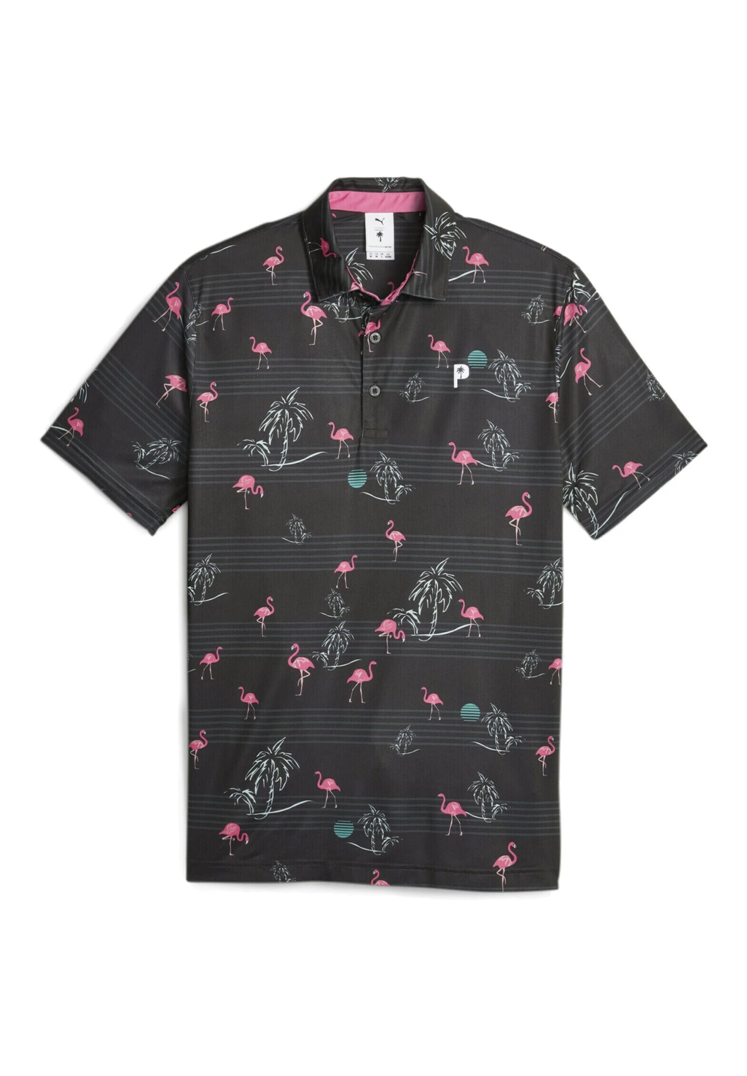 Puma Palm Tree Crew Bedrucktes Golf – Poloshirt – Black Charming Pink